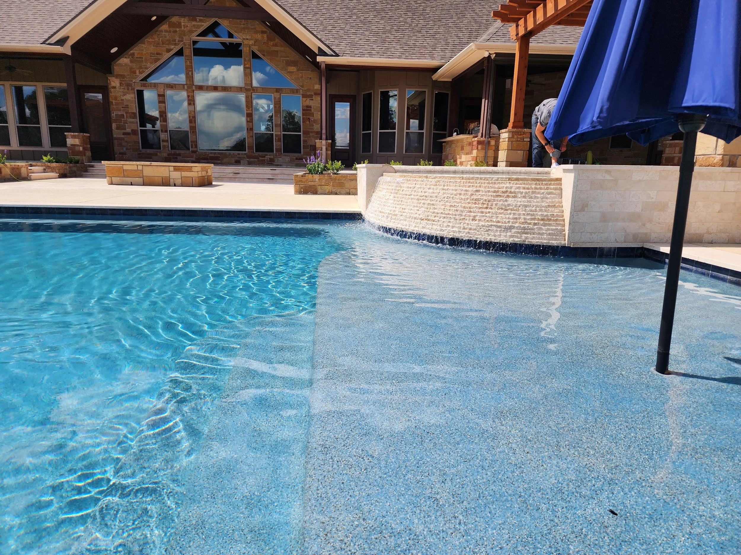 Adding a pool waterfall and grotto enhances your outdoor space with stunning aesthetics and a tranquil atmosphere. The soothing sound of flowing water promotes relaxation, while the natural look brings a touch of nature to your backyard. A grotto offers privacy and unique play areas, making the pool more enjoyable for everyone. Additionally, the mist from the waterfall can help cool the area. Overall, a waterfall and grotto transform your pool into a luxurious oasis with both aesthetic and functional benefits.